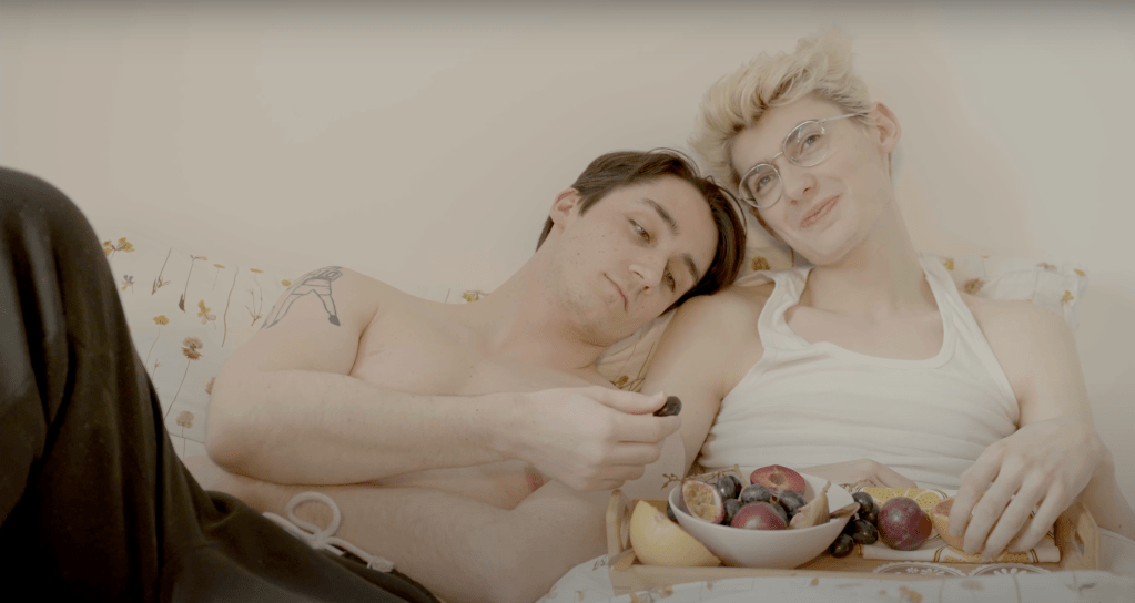 Achilles and Patroclus was created during our first year at Manchester Metropolitan University for our end of year module ‘Modern Mythologies’. Olidora brought together a group of close friends in order to send the year out on a high note with our main aim simply being to have as much fun creating this film as possible – which we were lucky enough to achieve. With many of the cast being interested in creating a queer narrative, Erin offered the idea to recreate this story in particular having read the inspiring novel previously. Achilles and Patroclus took three days in total to film, turning Wren’s apartment into the characters home – something you’ll see us continue to do in later films! This allowed the cast and crew the comfort of a closed and familiar space, and one in which we were able to experiment and develop our art in without pressure or judgement on our first production. This was the first time many of our cast and crew were working together, and from this production lifelong friendships and creative partnerships were born. This film allowed us to work with new/non-actors, allowing our more personal connections with Josh and Harry to be the drive for authentic and emotionally led performances. We would not be able to talk about this film without mentioning our music composer, Carla Polistina, who created a beautiful score for this film, elevating its atmosphere completely, and allowing us to appreciate this film in its final form as a serious glimpse into what we plan to create in the future.